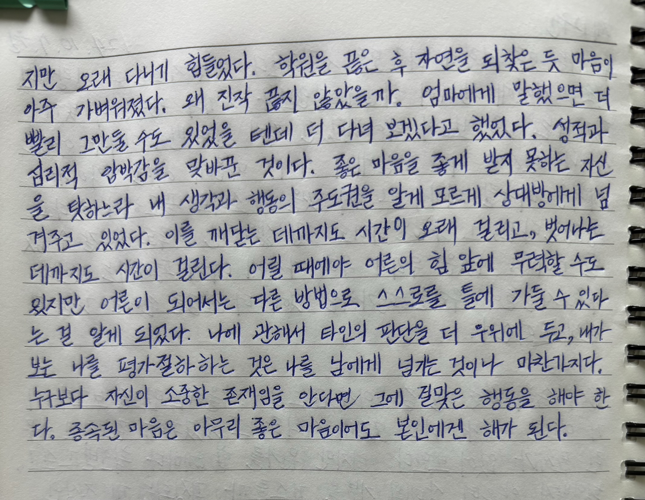 나보다 타인의 말을 신뢰하고, 평가를 신경 쓰고, 수동적으로 움직이는 나를 보면서 두려워졌다.