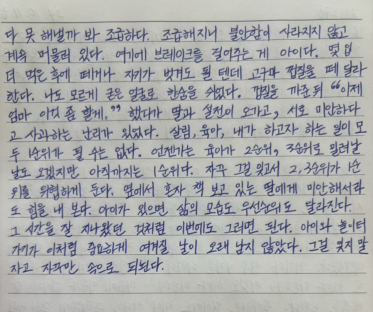 살림, 육아, 내가 하고자 하는 일이 모두 1순위가 될 수는 없다.