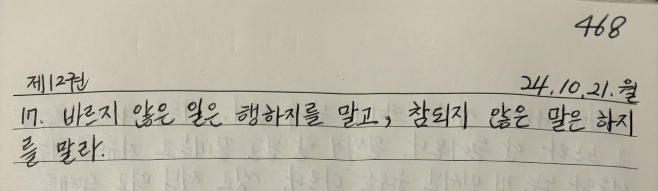 바르지 않은 일은 행하지를 말고, 참되지 않은 말은 하지를 말라.