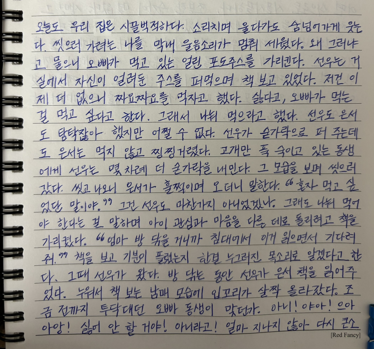 고개만 푹 숙이고 있는 동생에게 선우는 몇 차례 더 숟가락을 내민다.
