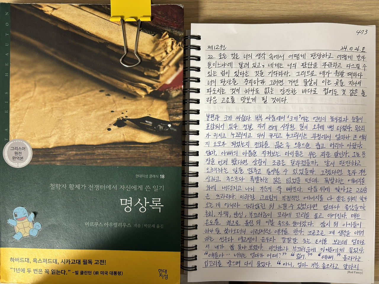 오늘의 교훈은 '다음에 비슷한 일이 일어난다면 얼른 《명상록》을 펼쳐 아무 곳이나 읽어보자.'이다.