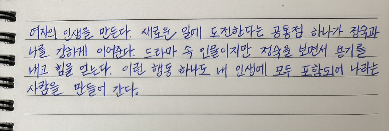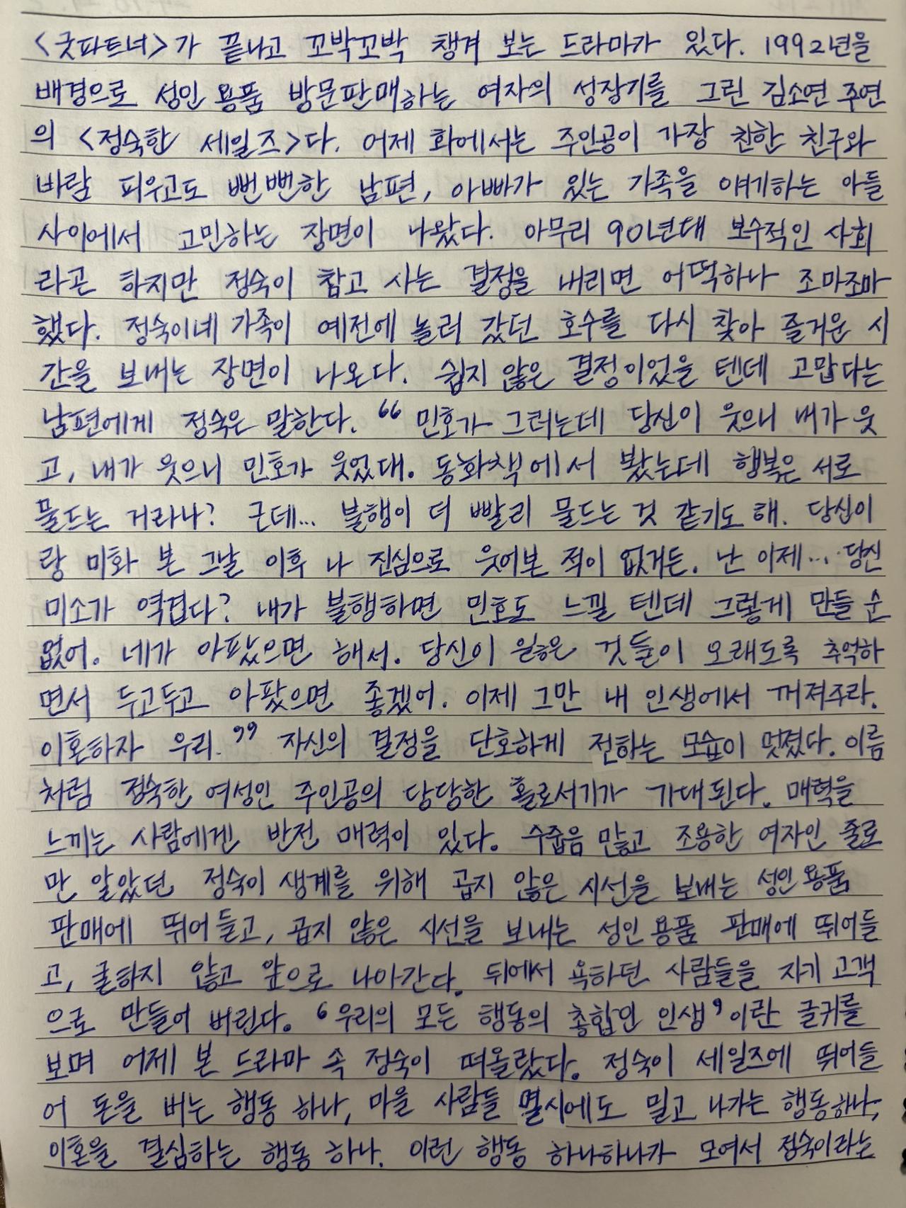 '우리의 모든 행동의 총합인 인생'이란 글귀를 보며 어제 본 드라마 속 정숙이 떠올랐다.