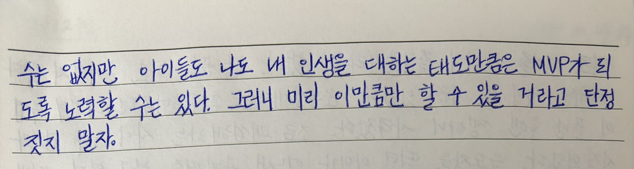 잘하고 싶다고 전부 잘할 수는 없지만 아이들도 나도 내 인생을 대하는 태도만큼은 MVP가 되도록 노력할 수는 있다.