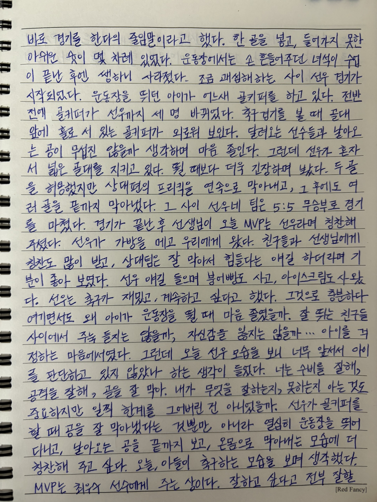 오늘, 아들이 축구하는 모습을 보며 생각했다.