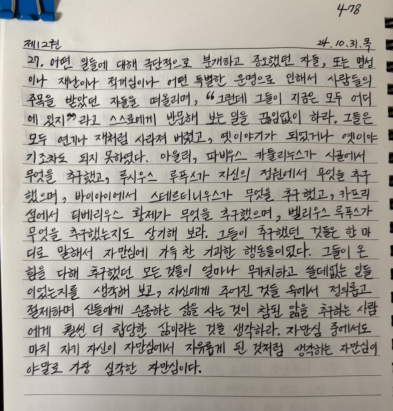-《명상록》, 마르쿠스 아우렐리우스_제12권 27 중에서