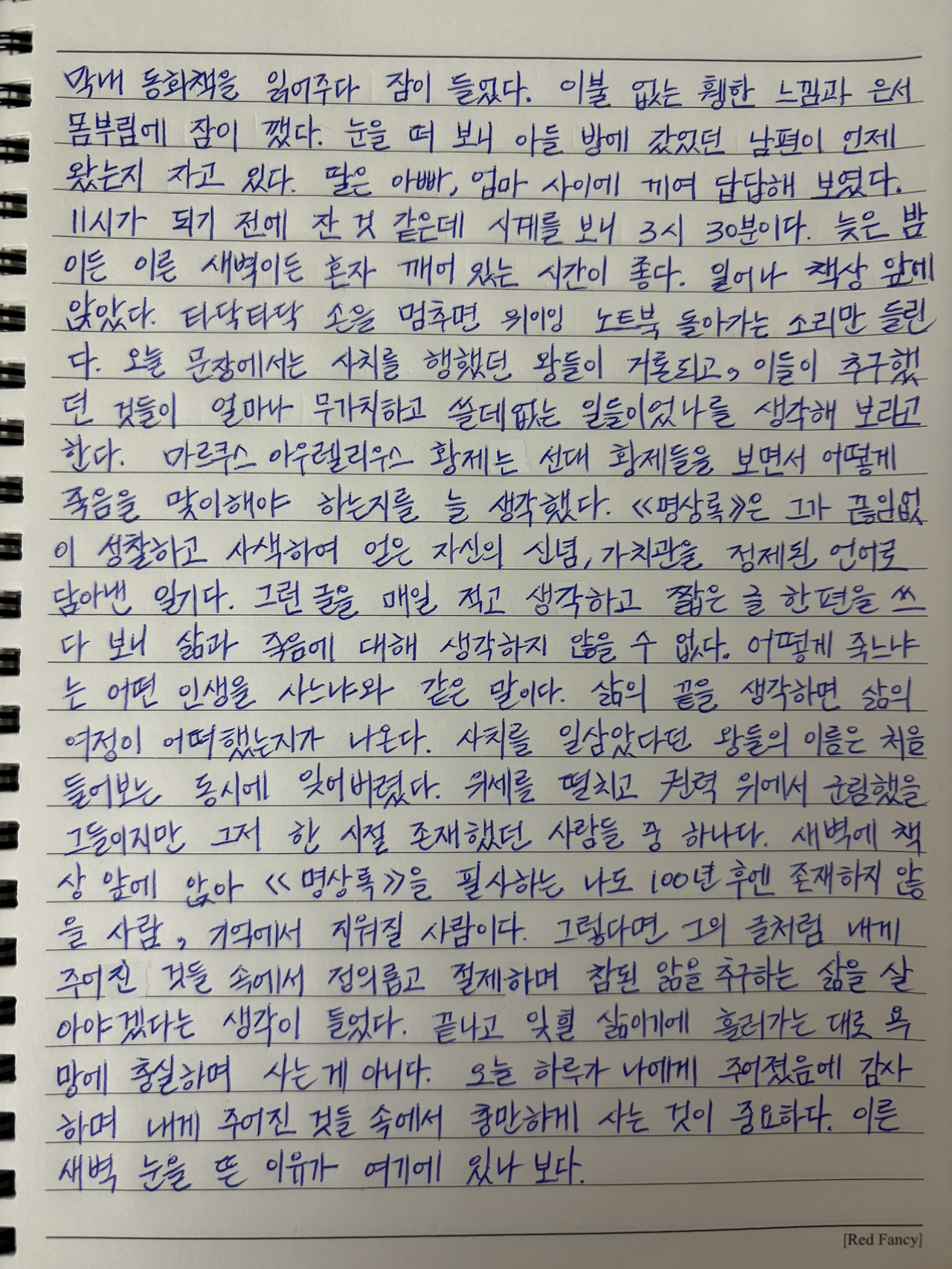새벽에 책상 앞에 앉아 《명상록》을 필사하는 나도 100년 후엔 존재하지 않을 사람, 기억에서 지워질 사람이다.