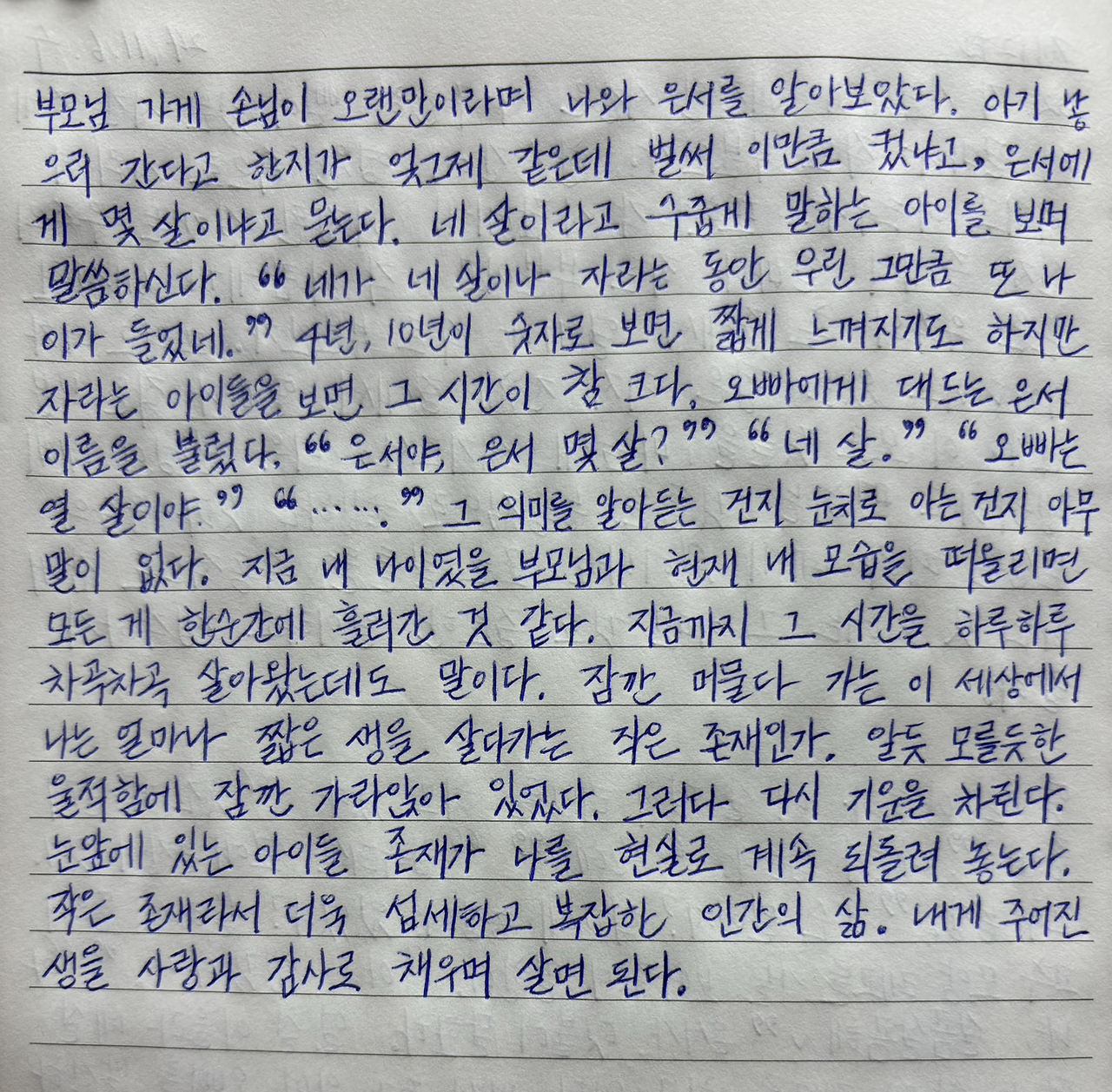 지금 내 나이였을 부모님과 현재 내 모습을 떠올리면 모든 게 한순간에 흘러간 것 같다.
