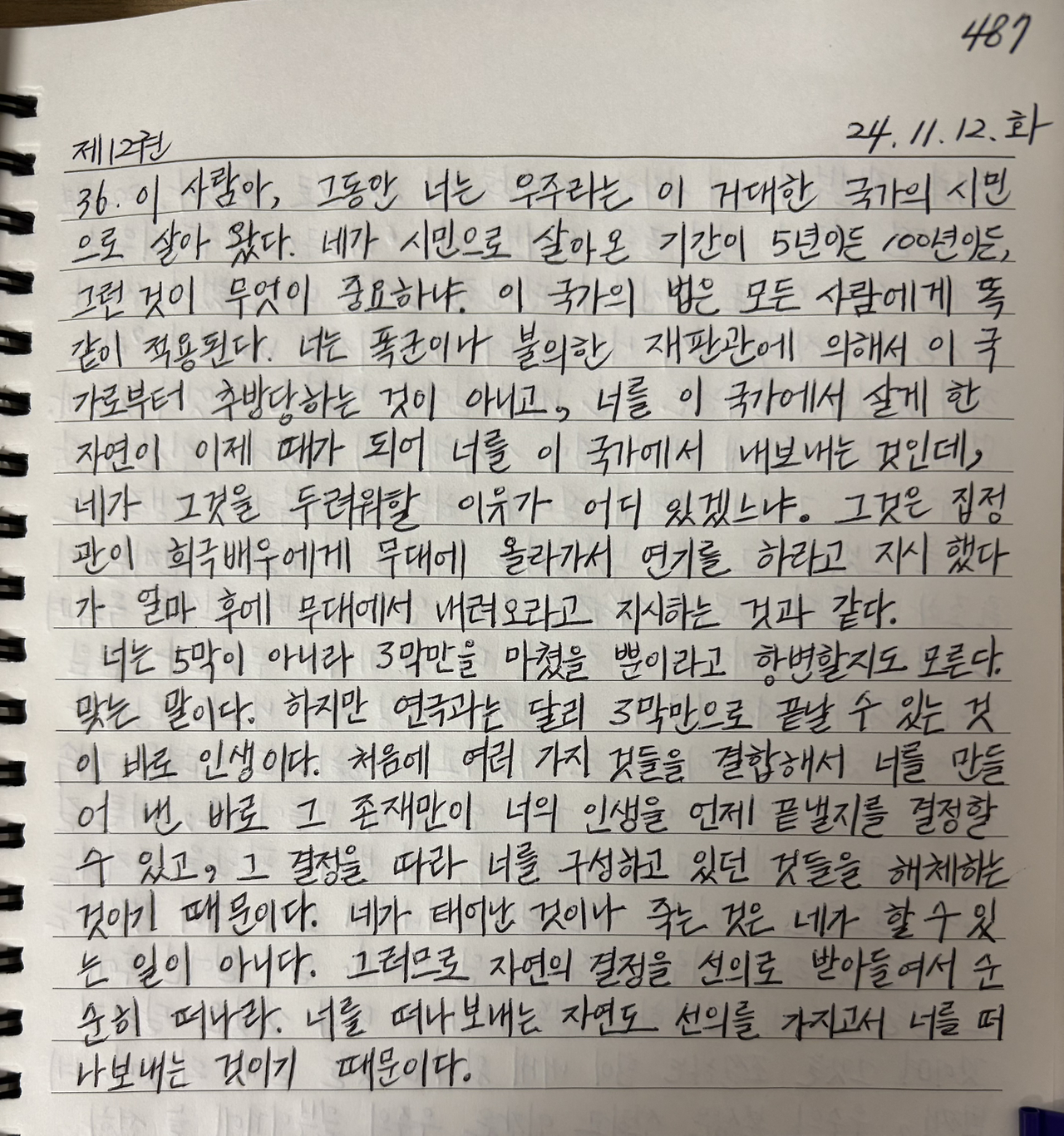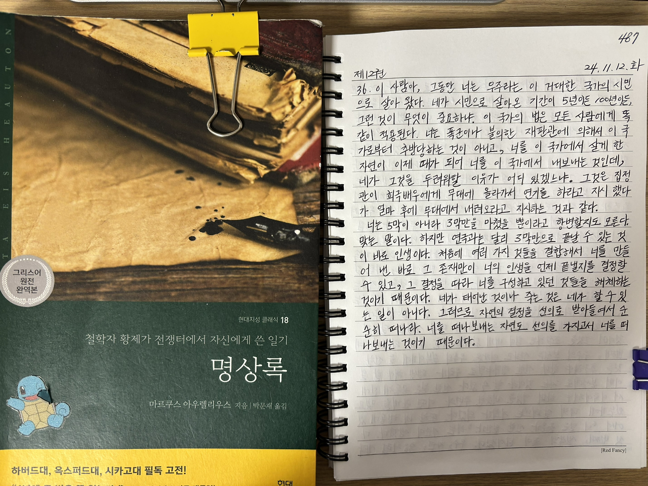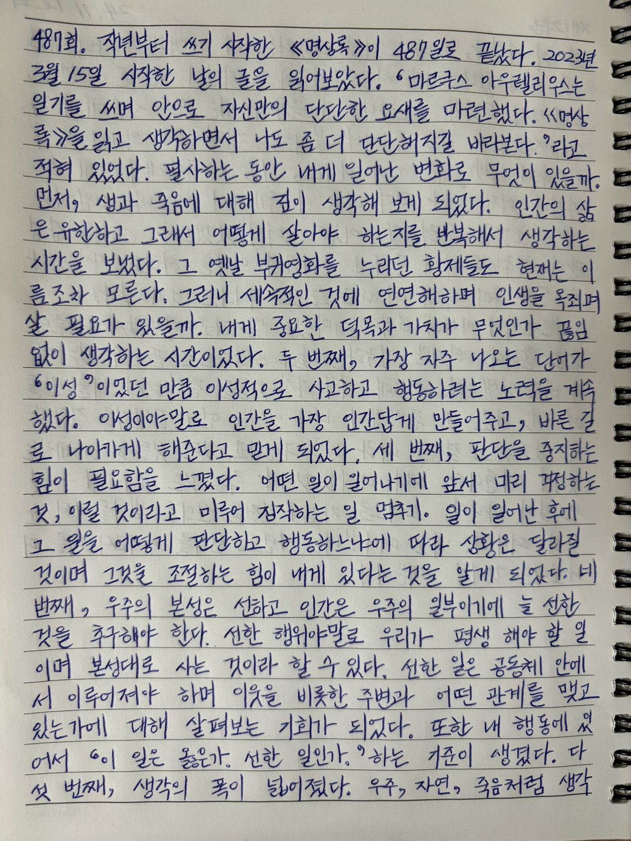 작년부터 쓰기 시작한 《명상록》이 487일로 끝났다.