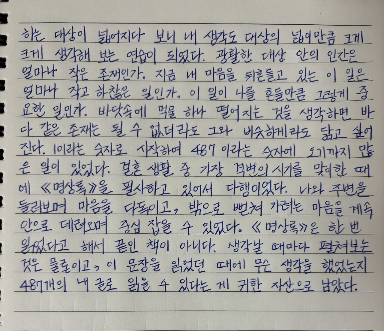 필사하는 동안 내게 일어난 변화로 무엇이 있을까.