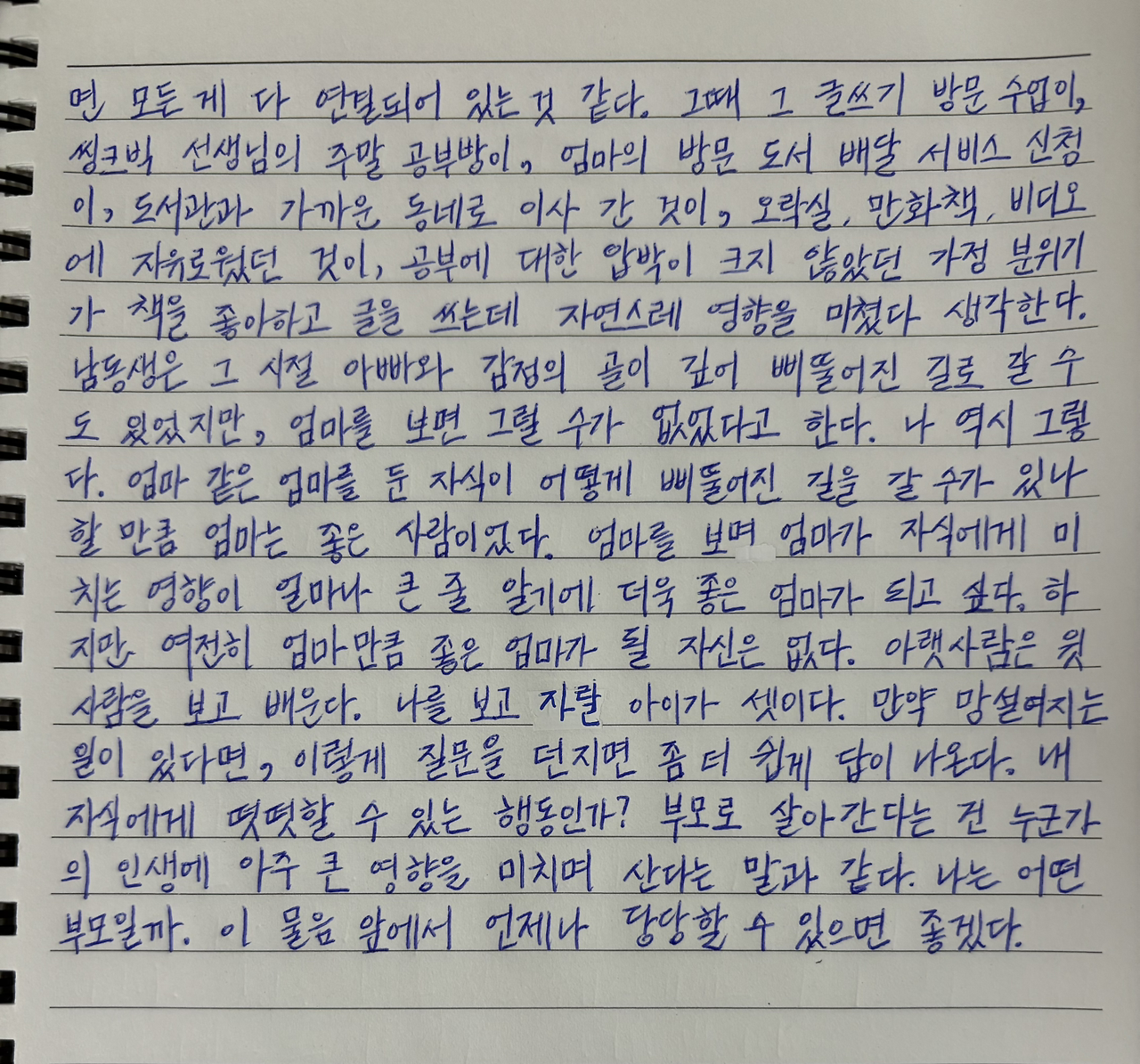 그때 그 글쓰기 방문 수업이, 씽크빅 선생님의 주말 공부방이, 엄마의 방문 도서 배달 서비스 신청이, 도서관과 가까운 동네로 이사 간 것이, 오락실, 만화책, 비디오에 자유로웠던 것이, 공부에 대한 압박이 크지 않았던 가정 분위기가 책을 좋아하고 글을 쓰는데 자연스레 영향을 미쳤다 생각한다.
