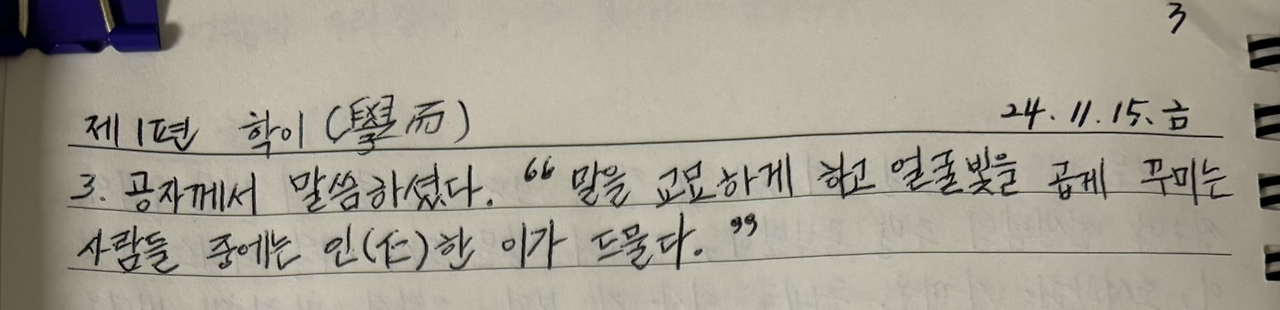 -《논어》, 공자_제1편 학이(學而) 3.