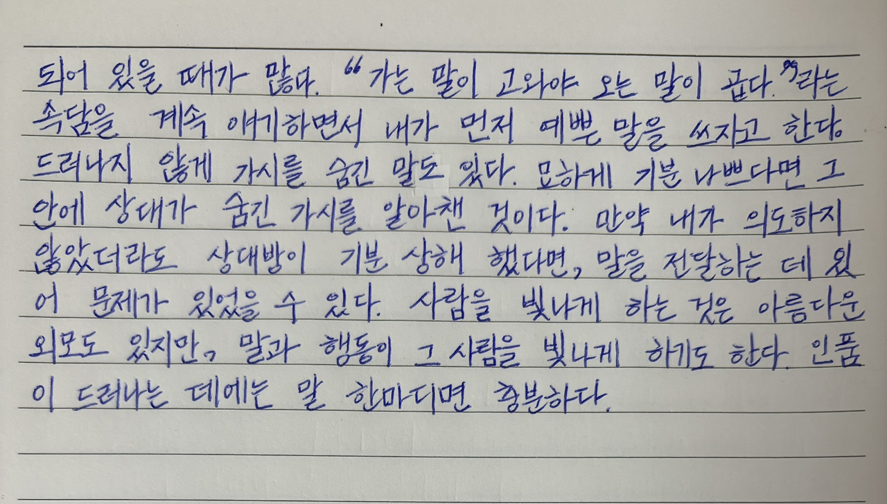사람을 빛나게 하는 것은 아름다운 외모도 있지만, 말과 행동이 그 사람을 빛나게 하기도 한다.
