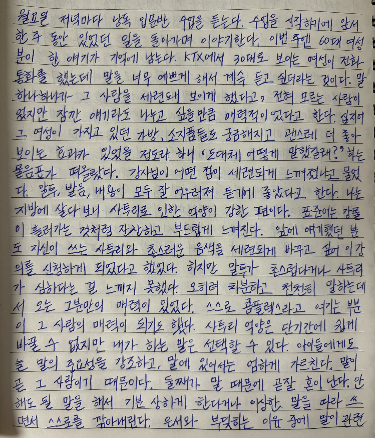 앞에 얘기했던 분도 자신이 쓰는 사투리와 촌스러운 음색을 세련되게 바꾸고 싶어 이 강의를 신청하게 되었다고 했었다.