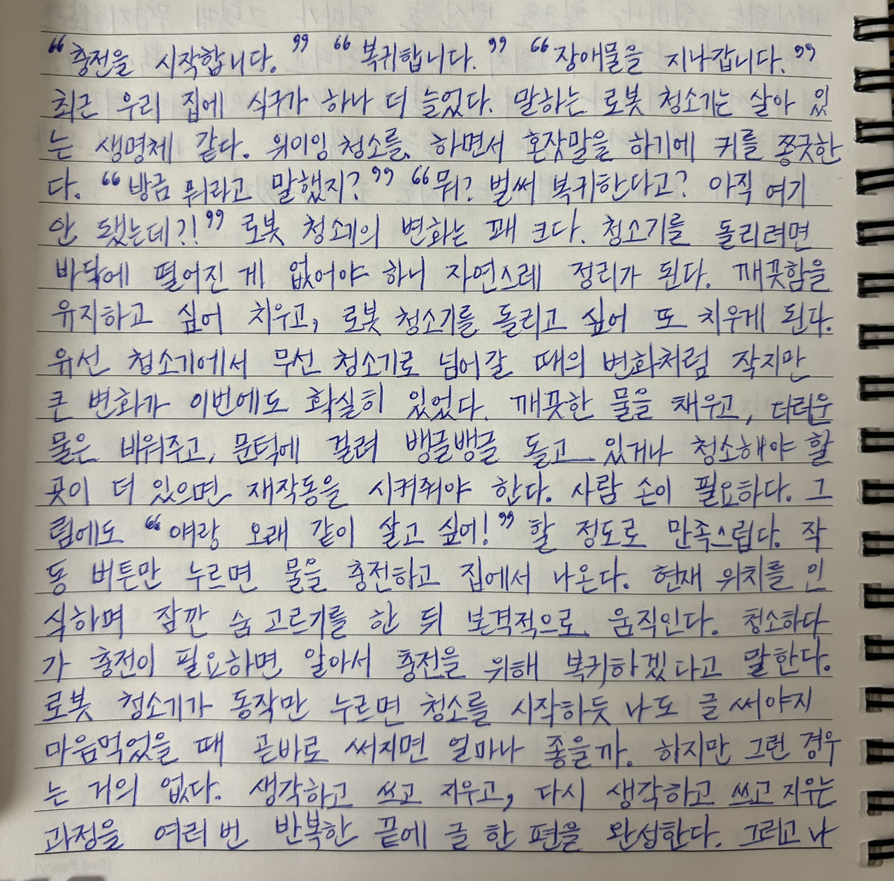 로봇 청소기가 동작만 누르면 청소를 시작하듯 나도 글 써야지 마음먹었을 때 곧바로 써지면 얼마나 좋을까.