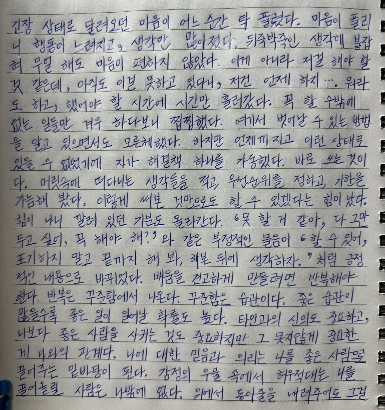 마음이 풀리니 행동이 느려지고, 생각만 많아졌다.