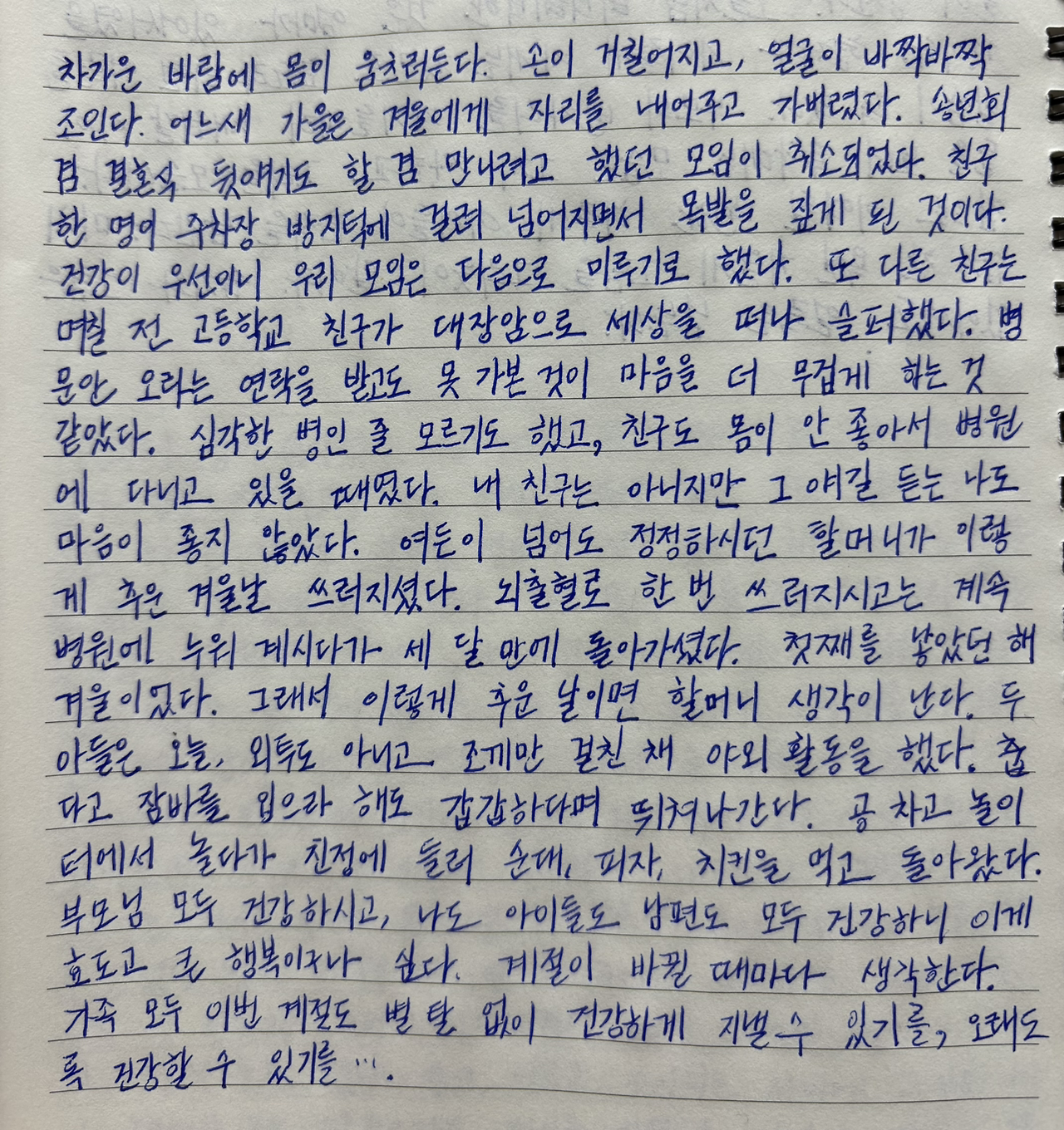 가족 모두 이번 계절도 별 탈 없이 건강하게 지낼 수 있기를, 오래도록 건강할 수 있기를….