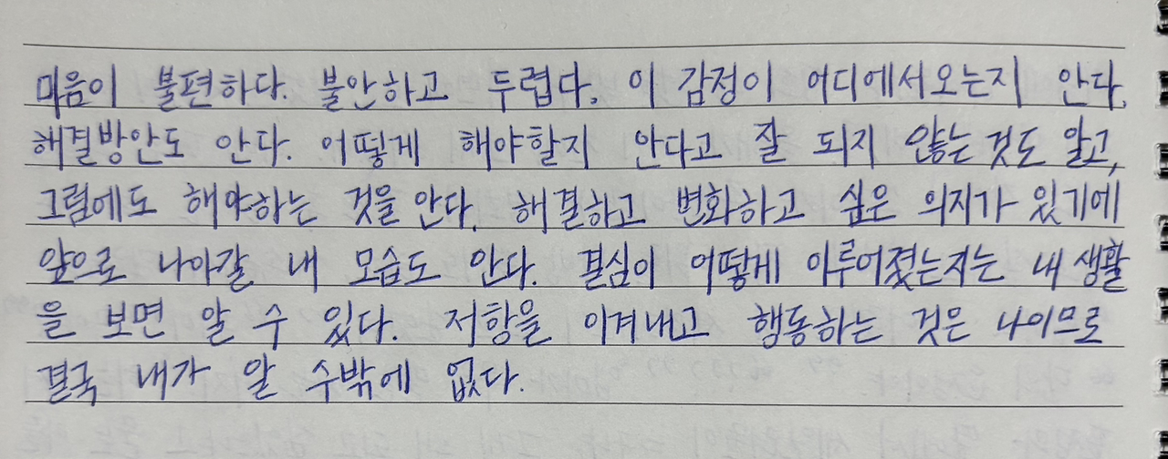 해결하고 변화하고 싶은 의지가 있기에 앞으로 나아갈 내 모습도 안다.
