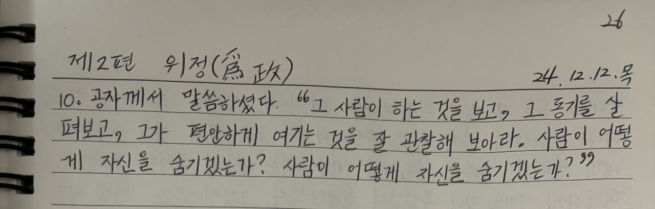 공자님 말씀처럼 내가 하는 행동의 동기를 살펴보고, 편안하게 여기는 것이 무엇인지 들여다본다.
