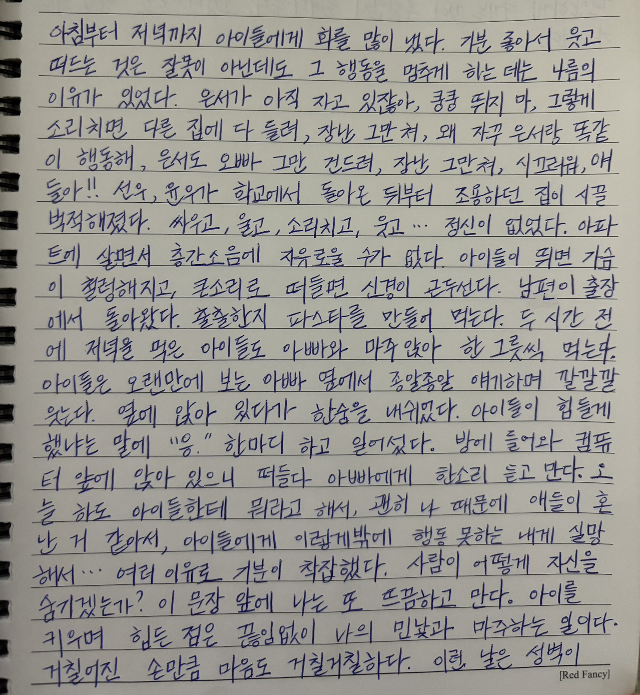 오늘 하도 아이들한테 뭐라 해서, 괜히 나 때문에 애들이 혼난 거 같아서, 아이들에게 이렇게밖에 행동 못하는 내게 실망해서… 여러 이유로 기분이 착잡했다.