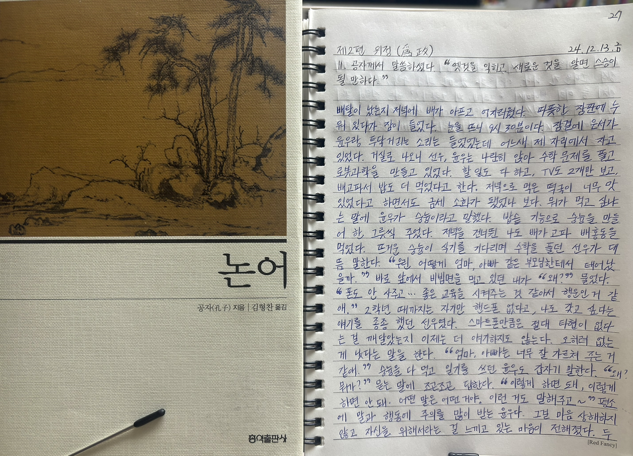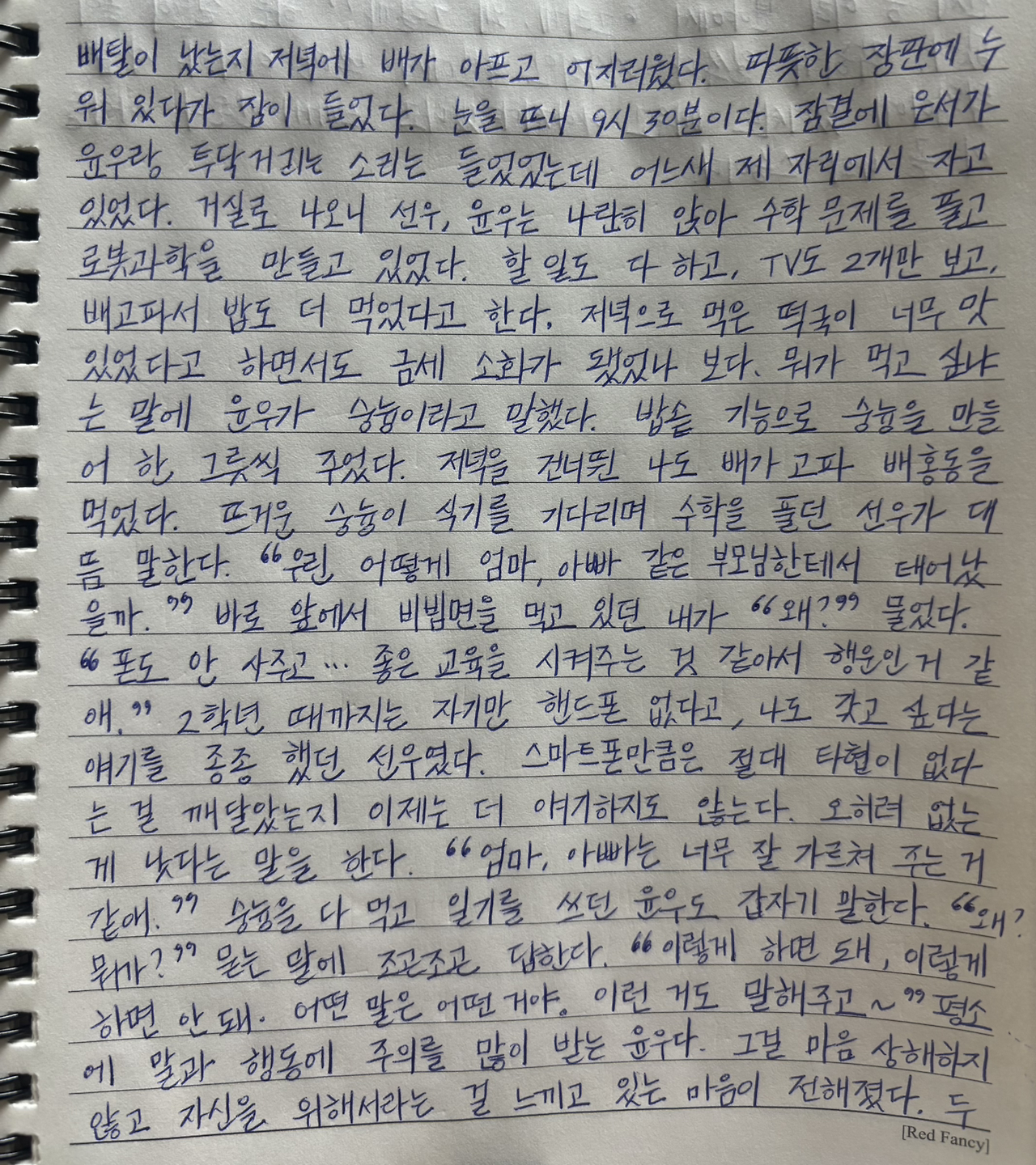 숭늉을 다 먹고 일기를 쓰던 윤우도 갑자기 말한다.