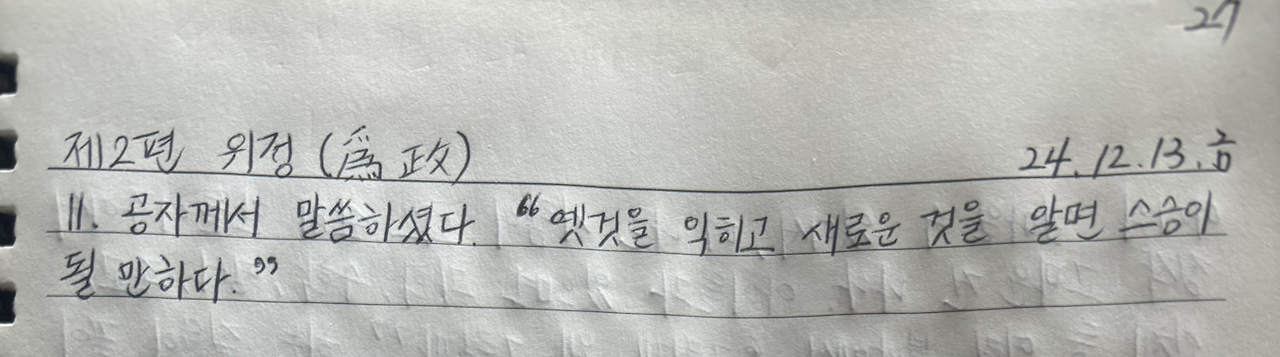 공자께서 말씀하셨다. “옛것을 익히고 새로운 것을 알면 스승이 될 만하다.”