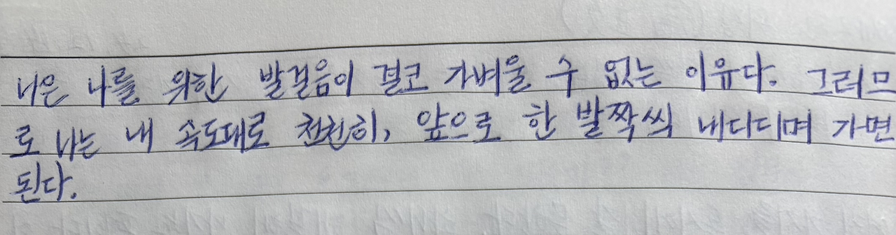 그러므로 나는 내 속도대로 천천히, 앞으로 한 발짝씩 내디디며 가면 된다.