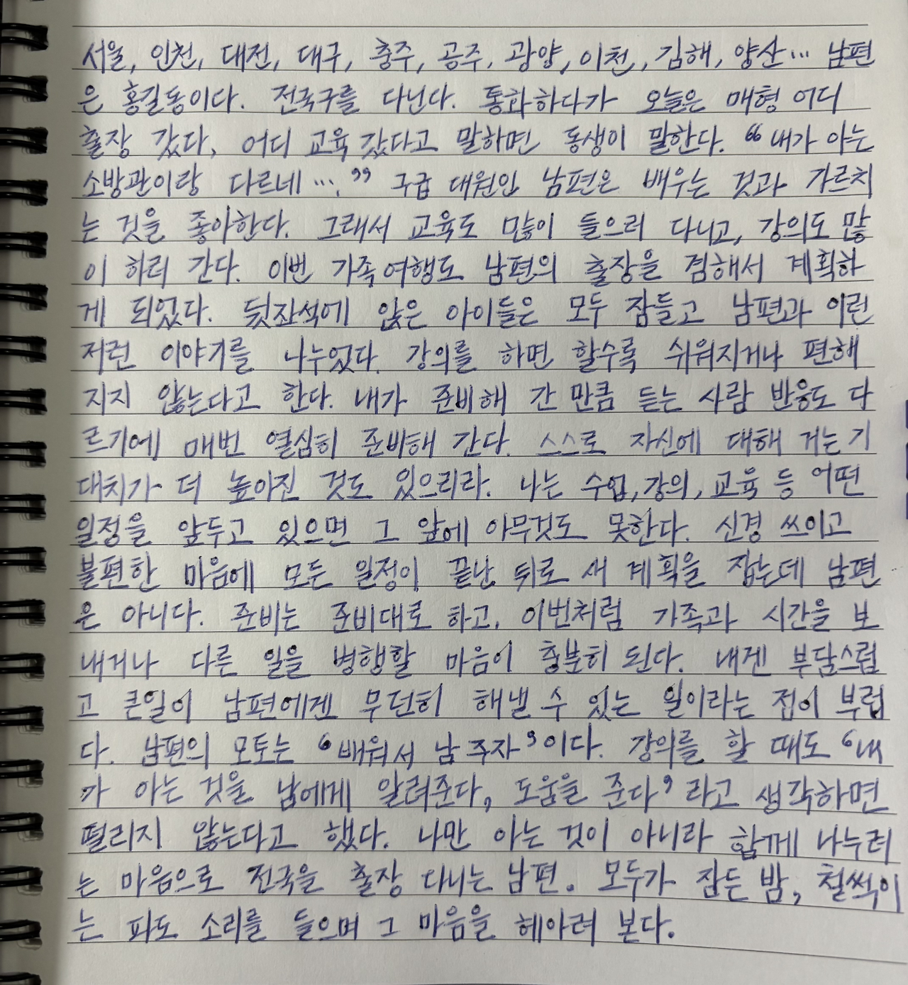 나만 아는 것이 아니라 함께 나누려는 마음으로 전국을 출장 다니는 남편.