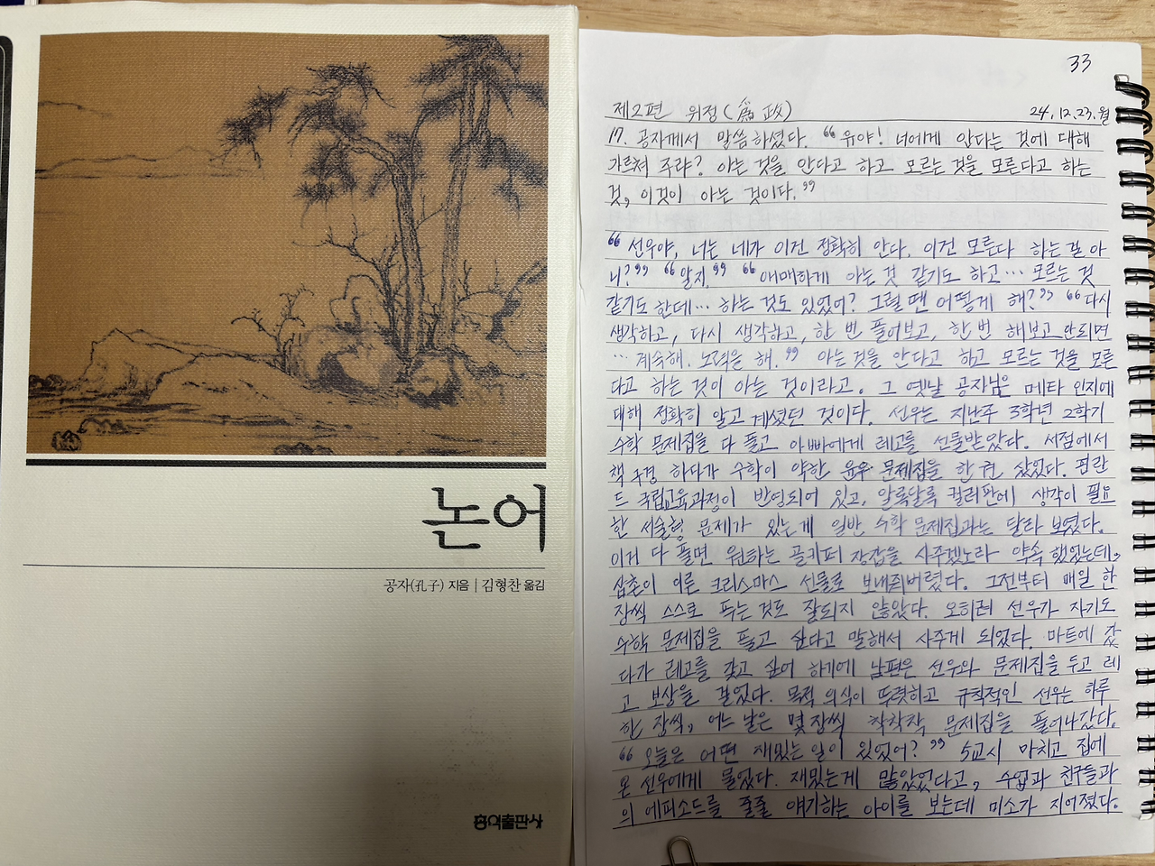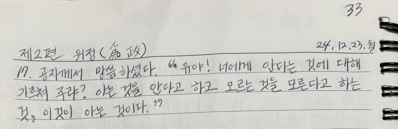 공자께서 말씀하셨다. “유야! 너에게 안다는 것에 대해 가르쳐 주랴? 아는 것을 안다고 하고 모르는 것을 모른다고 하는 것, 이것이 아는 것이다.