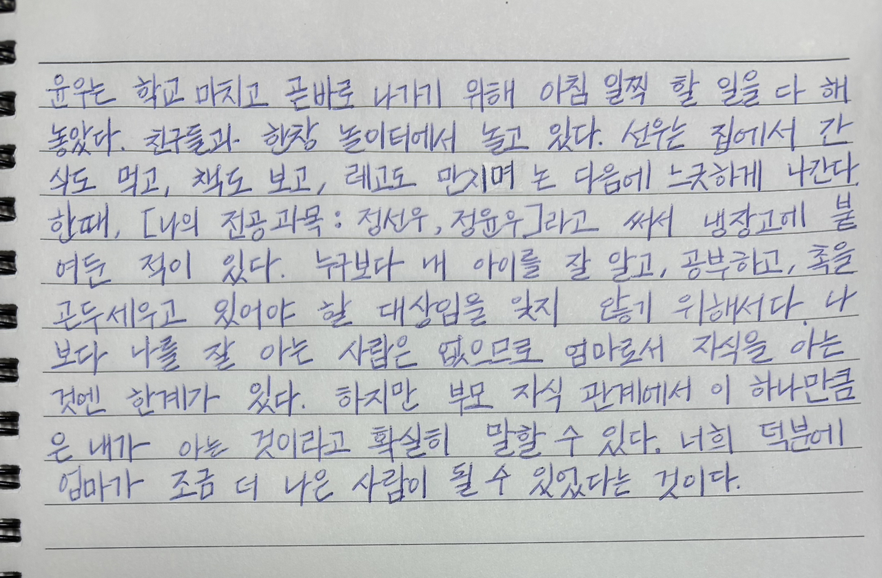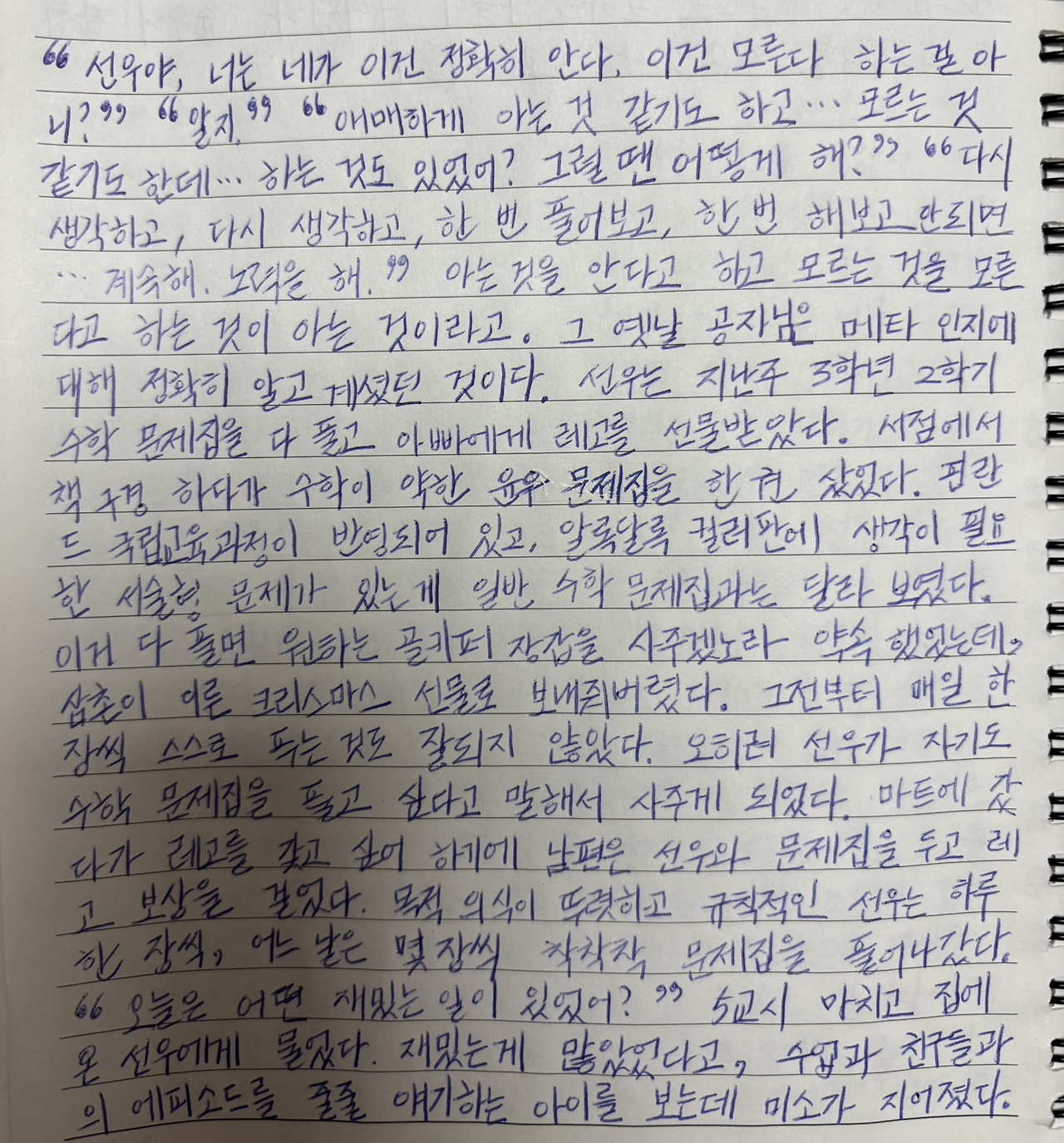 목적의식이 뚜렷하고 규칙적인 선우는 하루 한 장씩, 어느 날은 몇 장씩 착착착 문제집을 풀어나갔다.