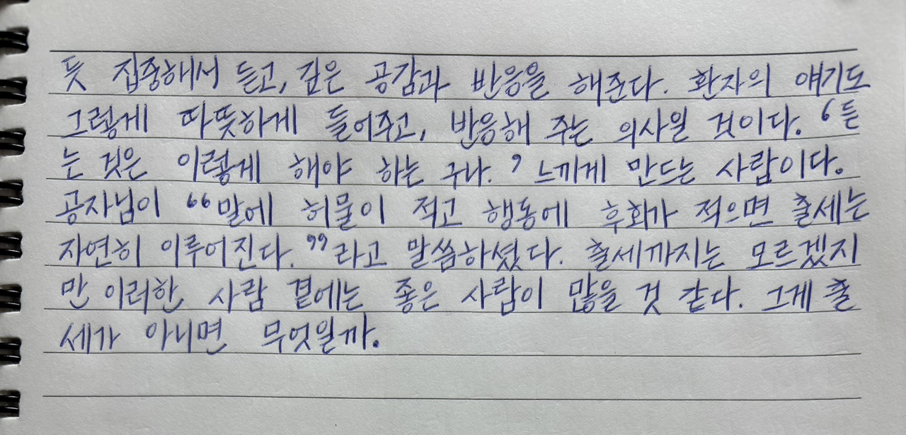 환자의 얘기도 그렇게 따뜻하게 들어주고, 반응해 주는 의사일 것이다.