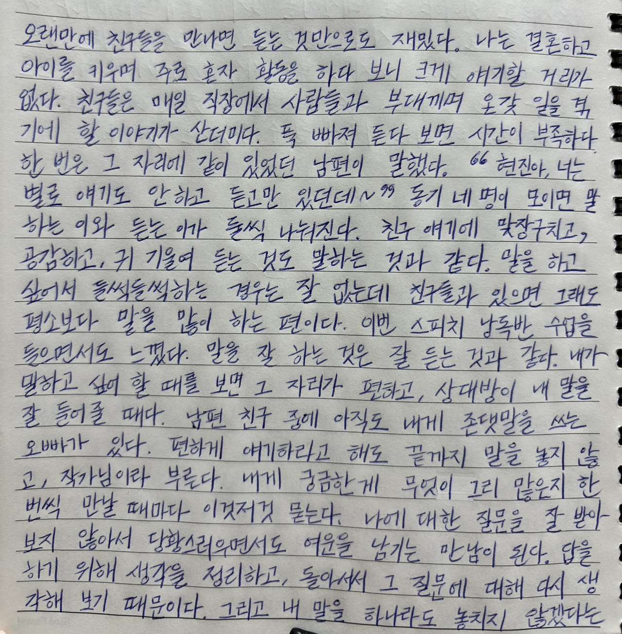 오랜만에 친구들을 만나면 듣는 것만으로도 재밌다.