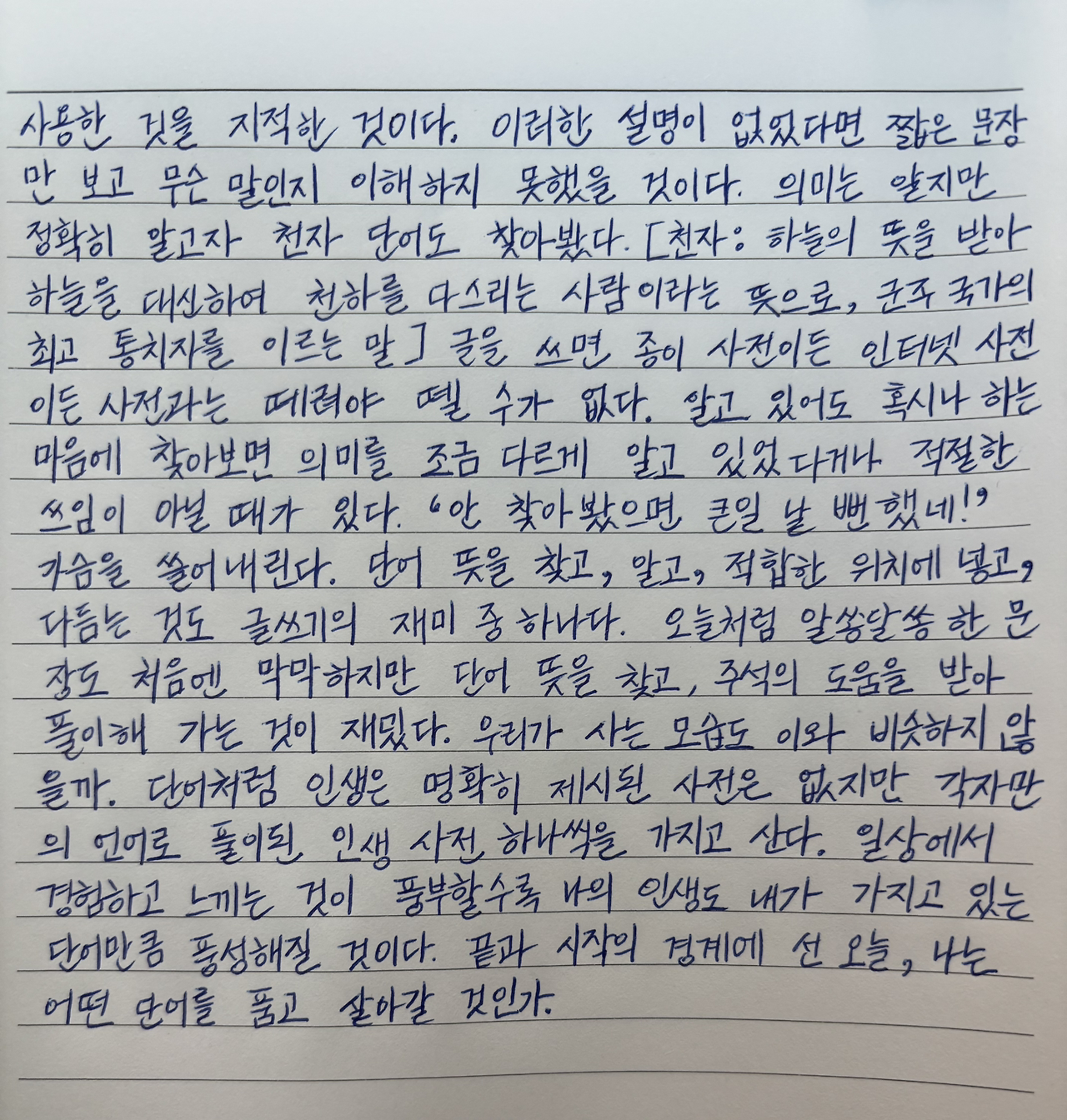일상에서 경험하고 느끼는 것이 풍부할수록 나의 인생도 내가 가지고 있는 단어만큼 풍성해질 것이다.