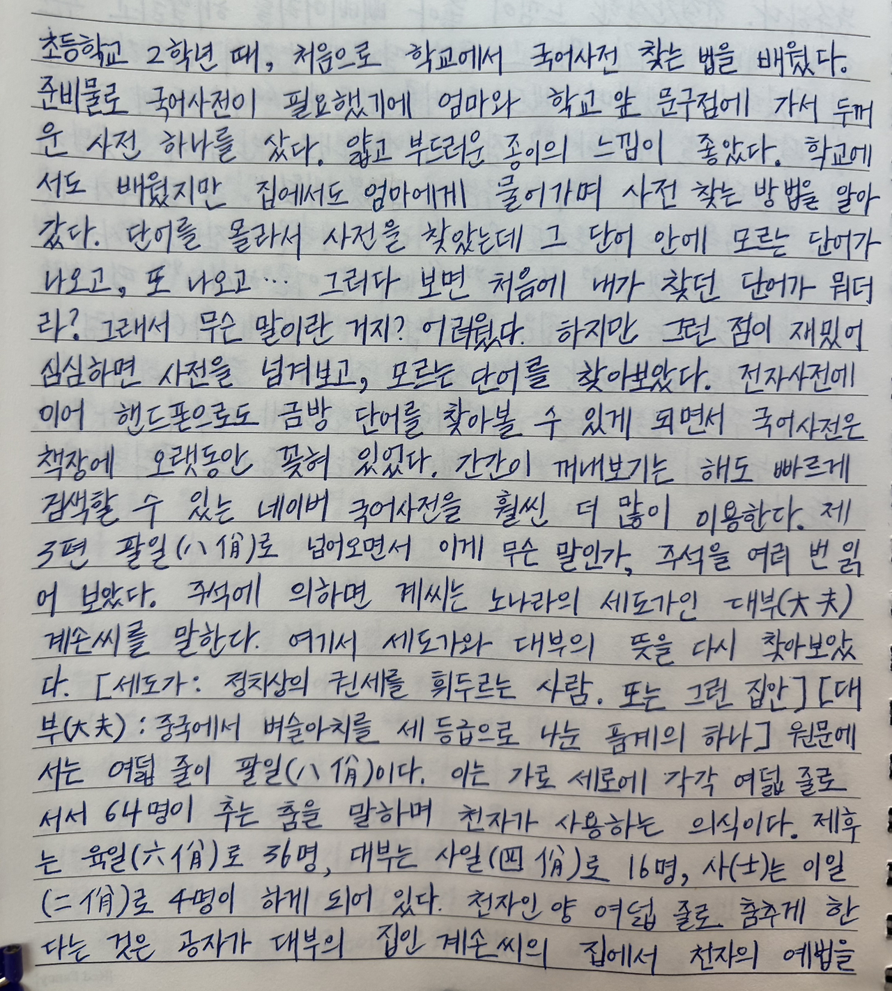 초등학교 2학년 때, 처음으로 학교에서 국어사전 찾는 법을 배웠다.