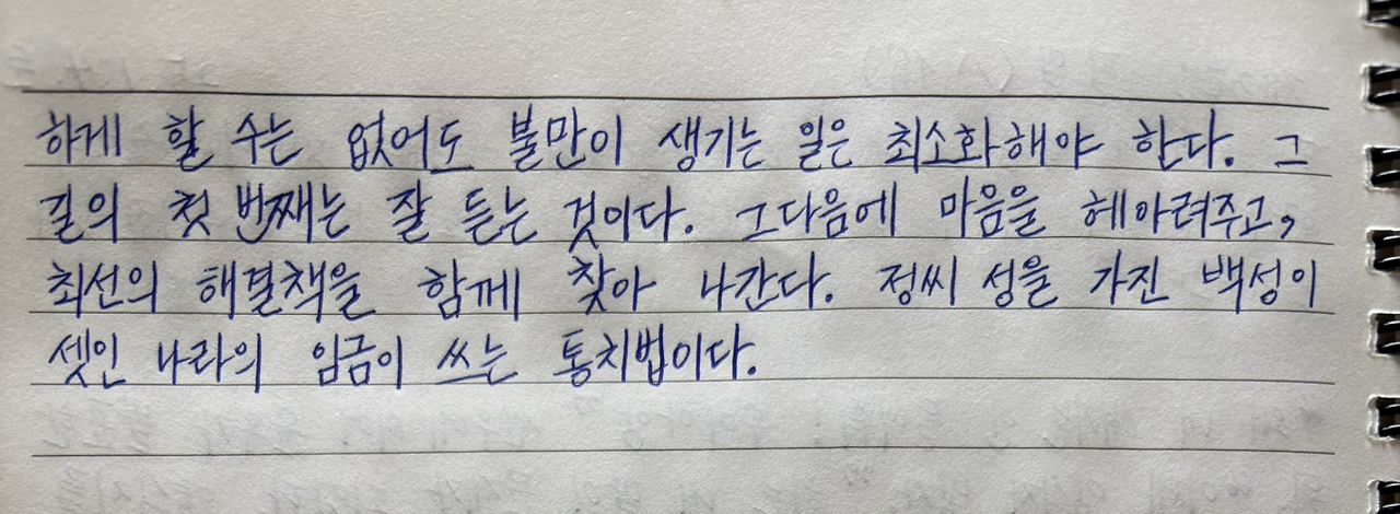 정씨 성을 가진 백성이 셋인 나라의 임금이 쓰는 통치법이다.