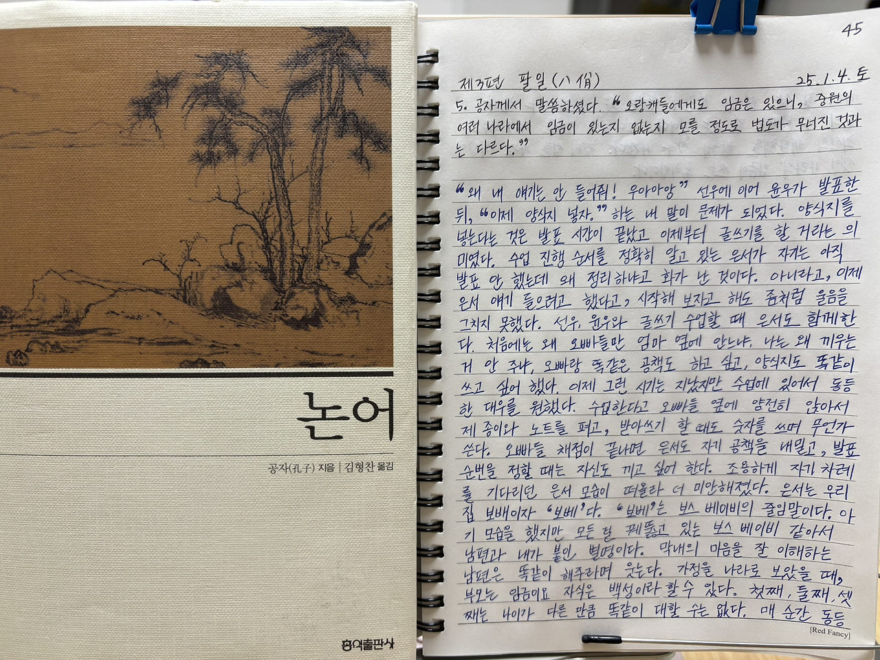 선우에 이어 윤우가 발표한 뒤, “이제 양식지 넣자.” 하는 내 말이 문제가 되었다.
