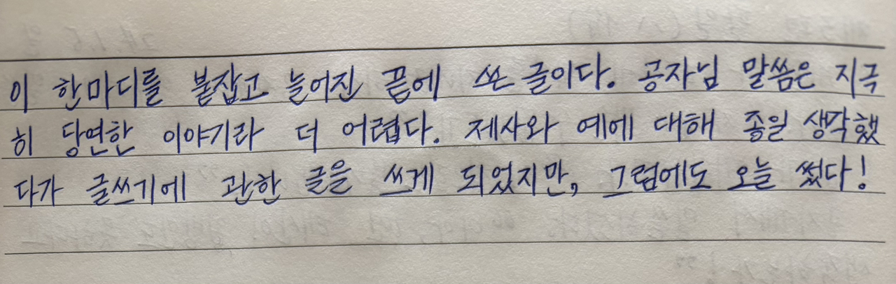 제사와 예에 대해 종일 생각했다가 글쓰기에 관한 글을 쓰게 되었지만, 그럼에도 오늘 썼다!
