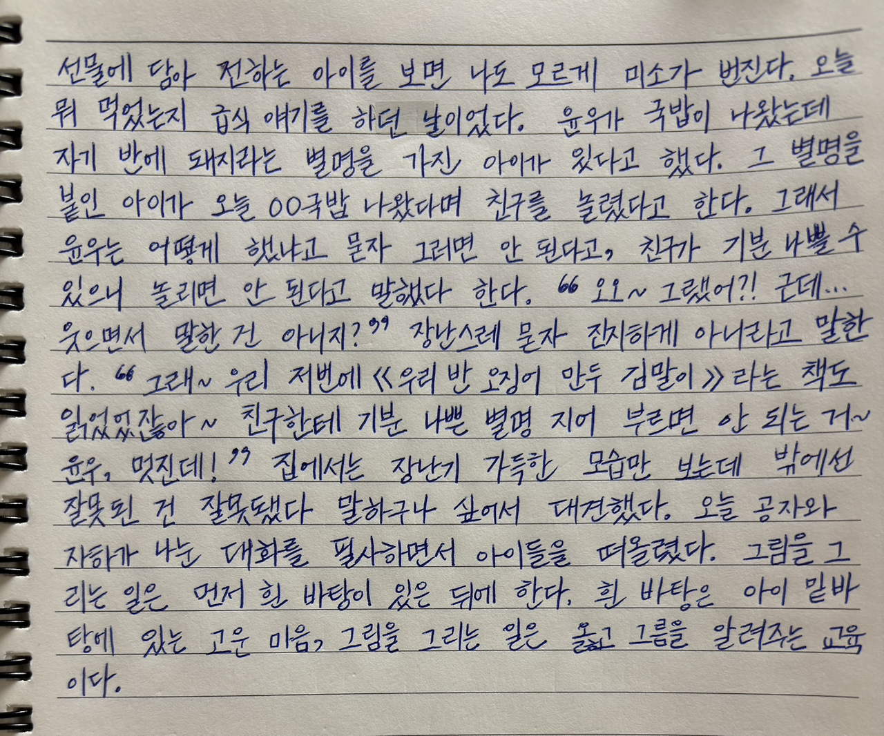 집에서는 장난기 가득한 모습만 보는데 밖에선 잘못된 건 잘못됐다 말하는구나 싶어서 대견했다.