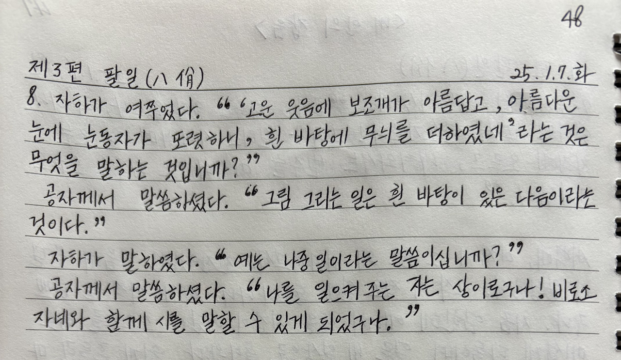 오늘 공자와 자하가 나눈 대화를 필사하면서 아이들을 떠올렸다.