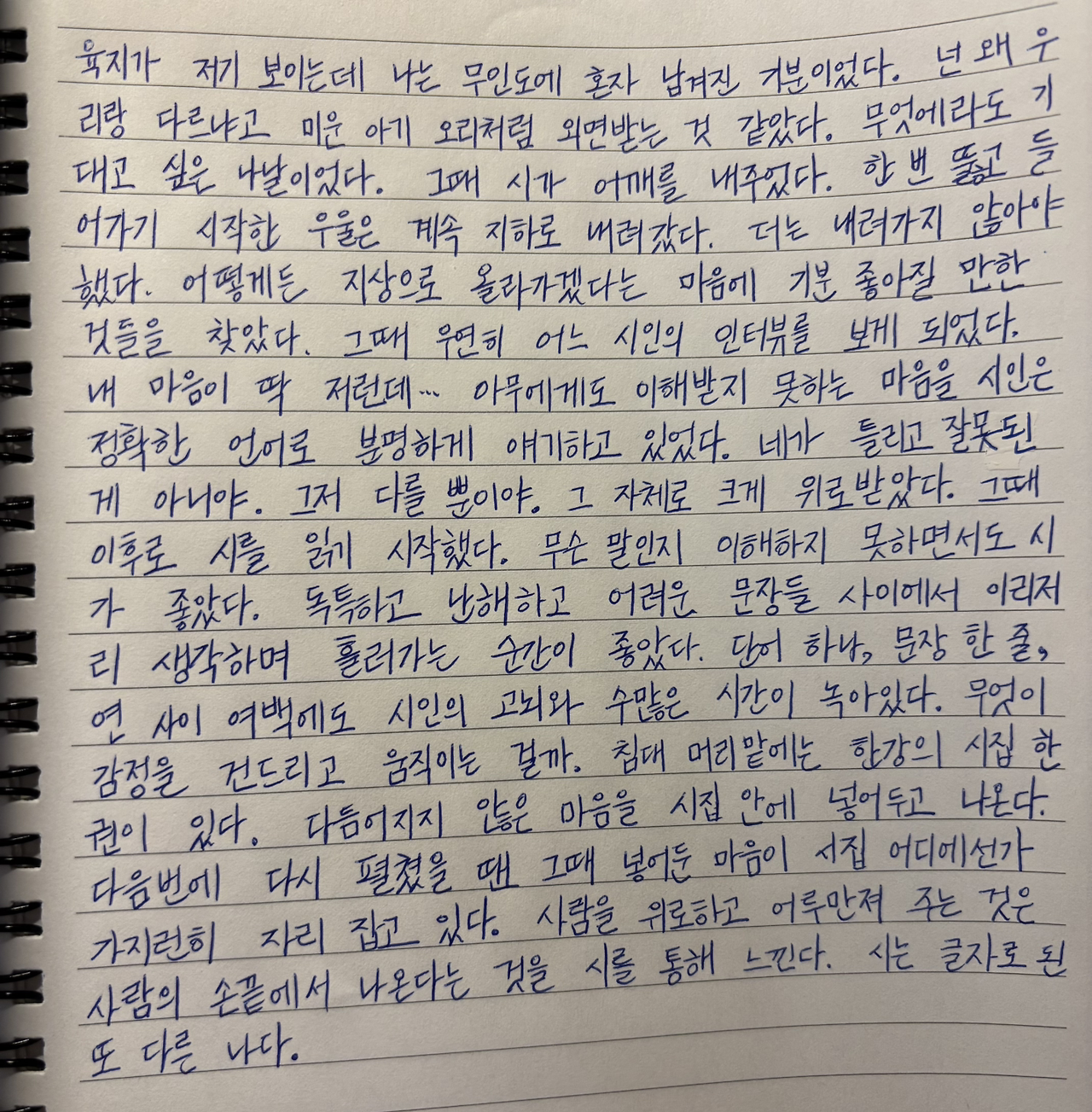 다음번에 다시 펼쳤을 땐 그때 넣어둔 마음이 시집 어디에선가 가지런히 자리 잡고 있다.