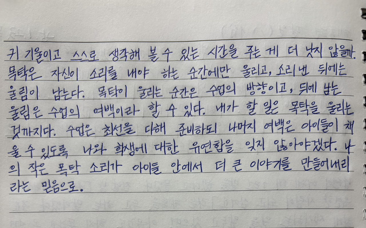 목탁이 울리는 순간은 수업의 방향이고, 뒤에 남는 울림은 수업의 여백이라 할 수 있다.