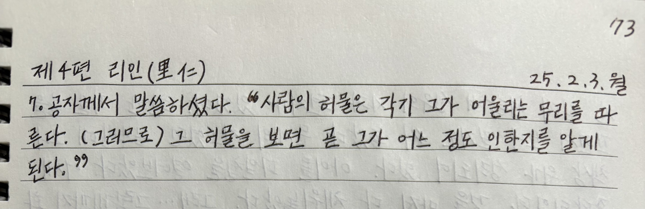 공자께서 말씀하셨다. "사람의 허물은 각기 그가 어울리는 무리를 따른다. (그러므로) 그 허물을 보면 곧 그가 어느 정도 인한지를 알게 된다."