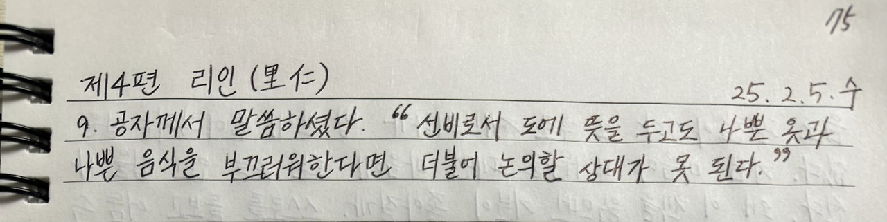 공자께서 말씀하셨다. “선비로서 도에 뜻을 두고도 나쁜 옷과 나쁜 음식을 부끄러워한다면 더불어 논의할 상대가 못 된다.”