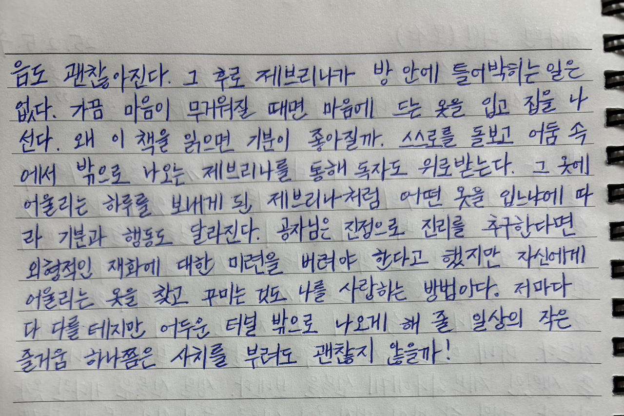 스스로를 돌보고 어둠 속에서 밖으로 나오는 제브리나를 통해 독자도 위로받는다.