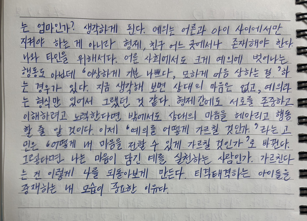 요즘 ‘예의를 어떻게 가르칠 것인가’ 고민하고 있다.
