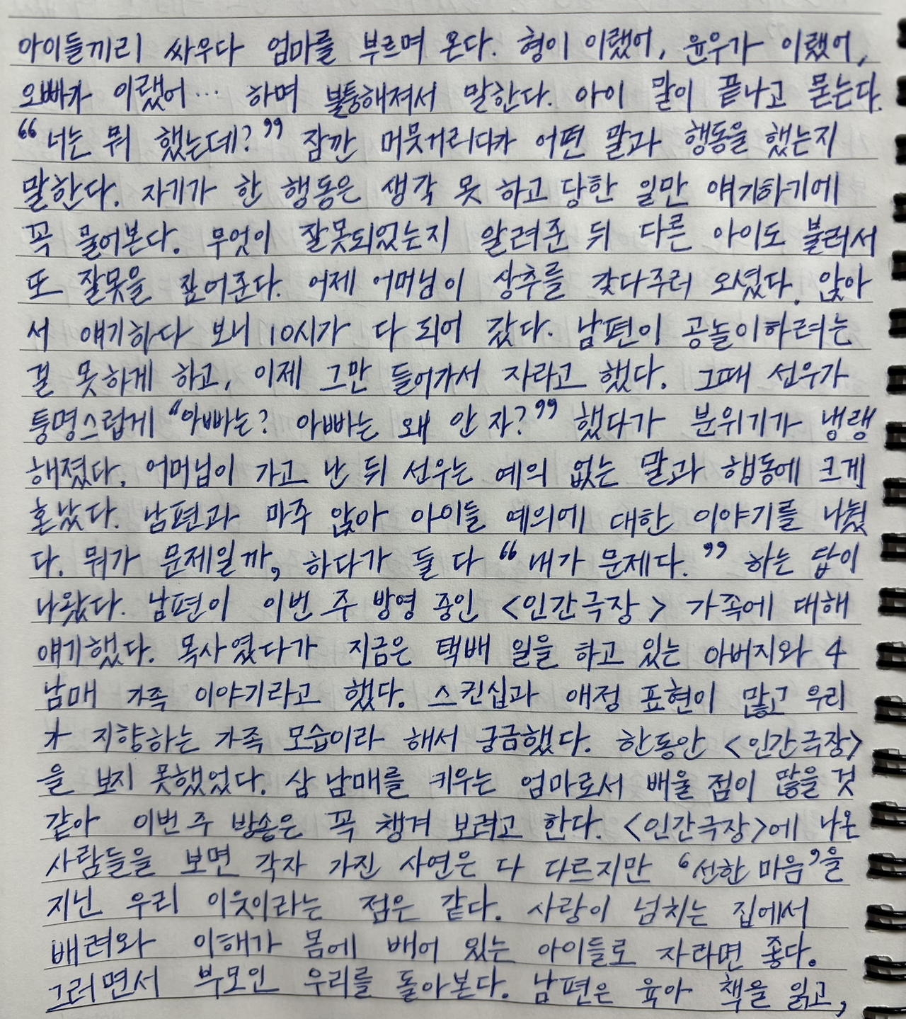 남편이 이번 주 방영 중인 <인간극장> 가족에 대해 얘기했다.