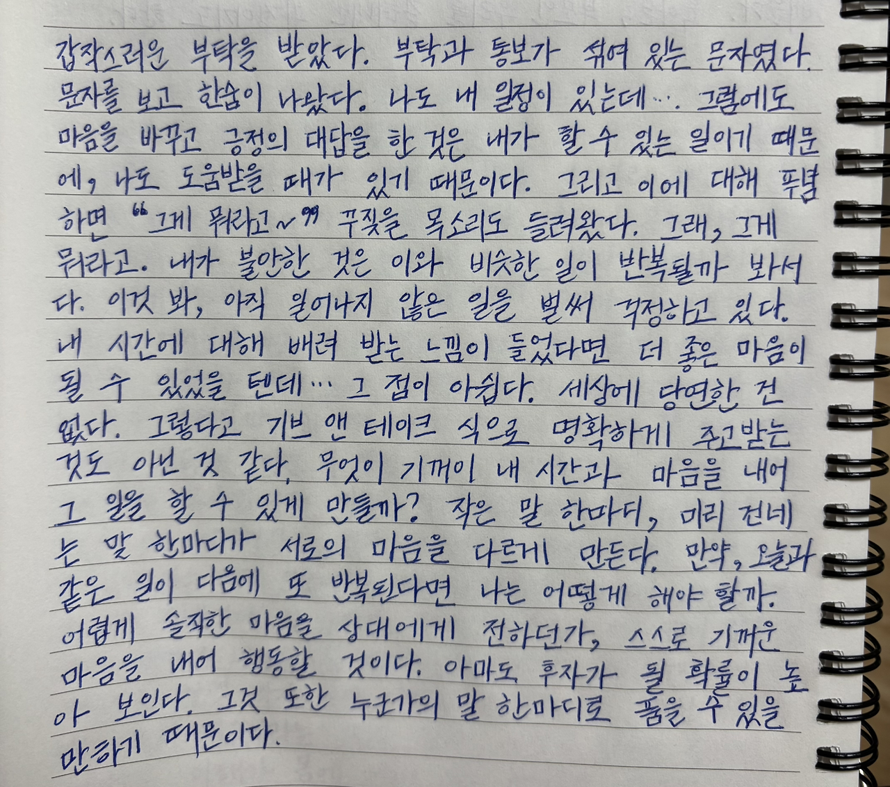 그럼에도 마음을 바꾸고 긍정의 대답을 한 것은 내가 할 수 있는 일이기 때문에, 나도 도움받을 때가 있기 때문이다.