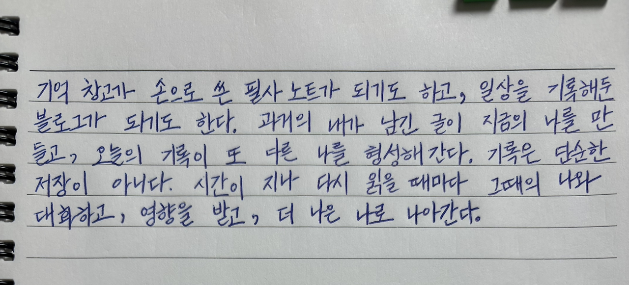 그 기억 창고가 손으로 쓴 필사 노트가 되기도 하고, 일상을 기록해 둔 블로그가 되기도 한다.