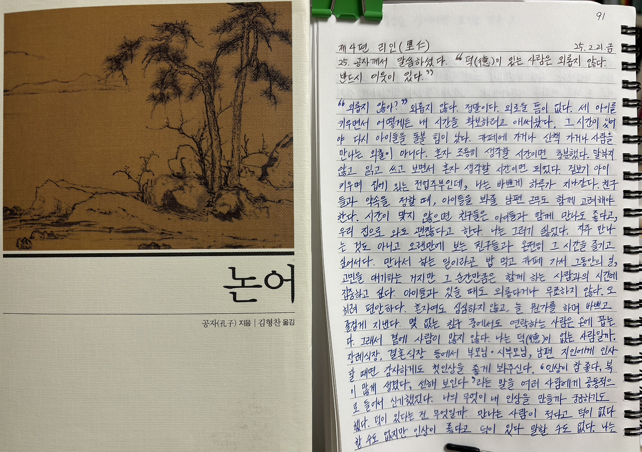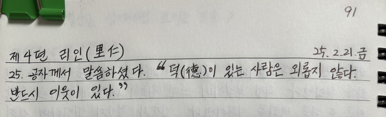 공자께서 말씀하셨다. “덕(德)이 있는 사람은 외롭지 않다. 반드시 이웃이 있다.”
