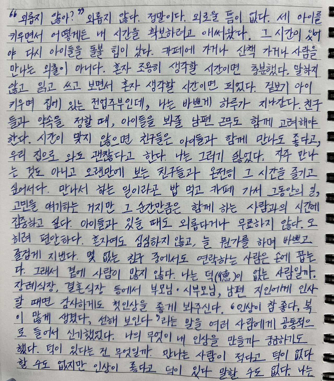 말하지 않고 읽고 쓰고 보면서 혼자 생각할 시간이면 되었다.