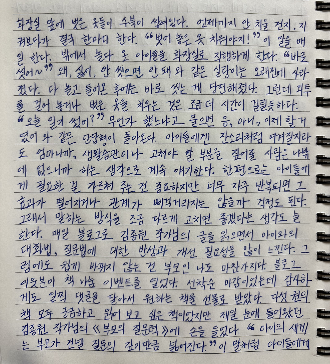 매일 블로그로 김종원 작가님의 글을 읽으면서 아이와의 대화법, 질문법에 대한 반성과 개선 필요성을 많이 느낀다.